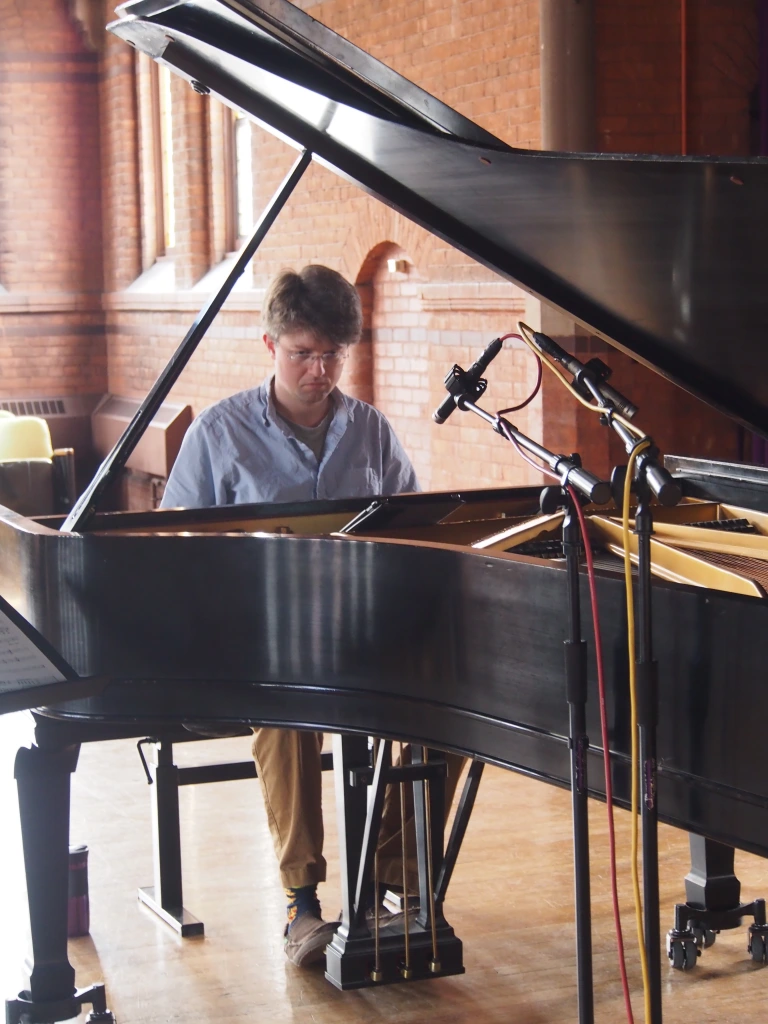 Here are some pictures from the sessions, including several taken by Qiushi Xu, a doctoral candidate at Tsinghua University in Beijing, China. She is a visiting student in the Department of Science and Technology Studies at Cornell, studying (in her words) the “intersection between piano sound, technology, culture and art convention.” Recording took place in a re-purposed chapel at Cornell: